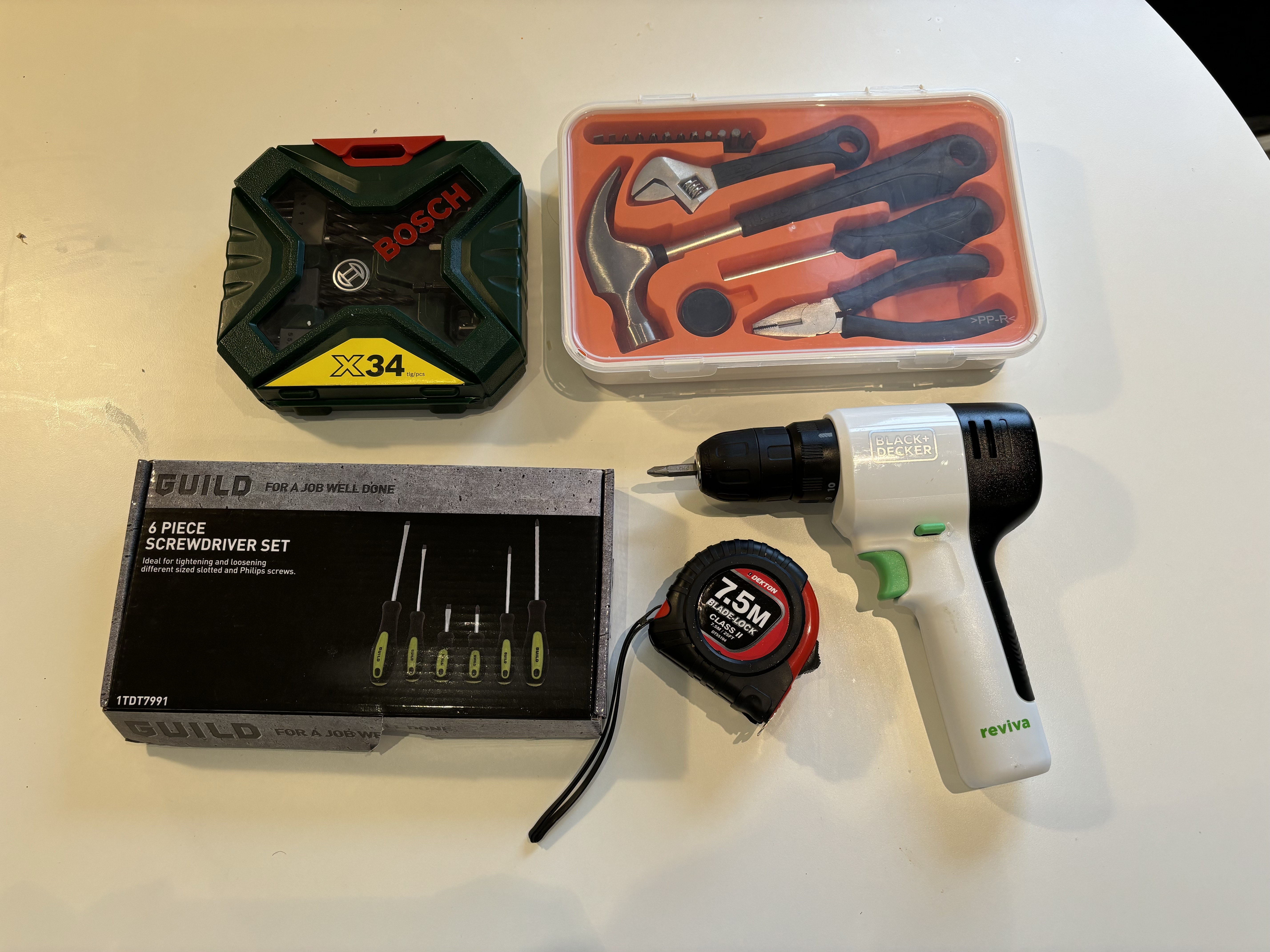 You can rent drills and screwdrivers for approx £7 per day or £26 for a week.