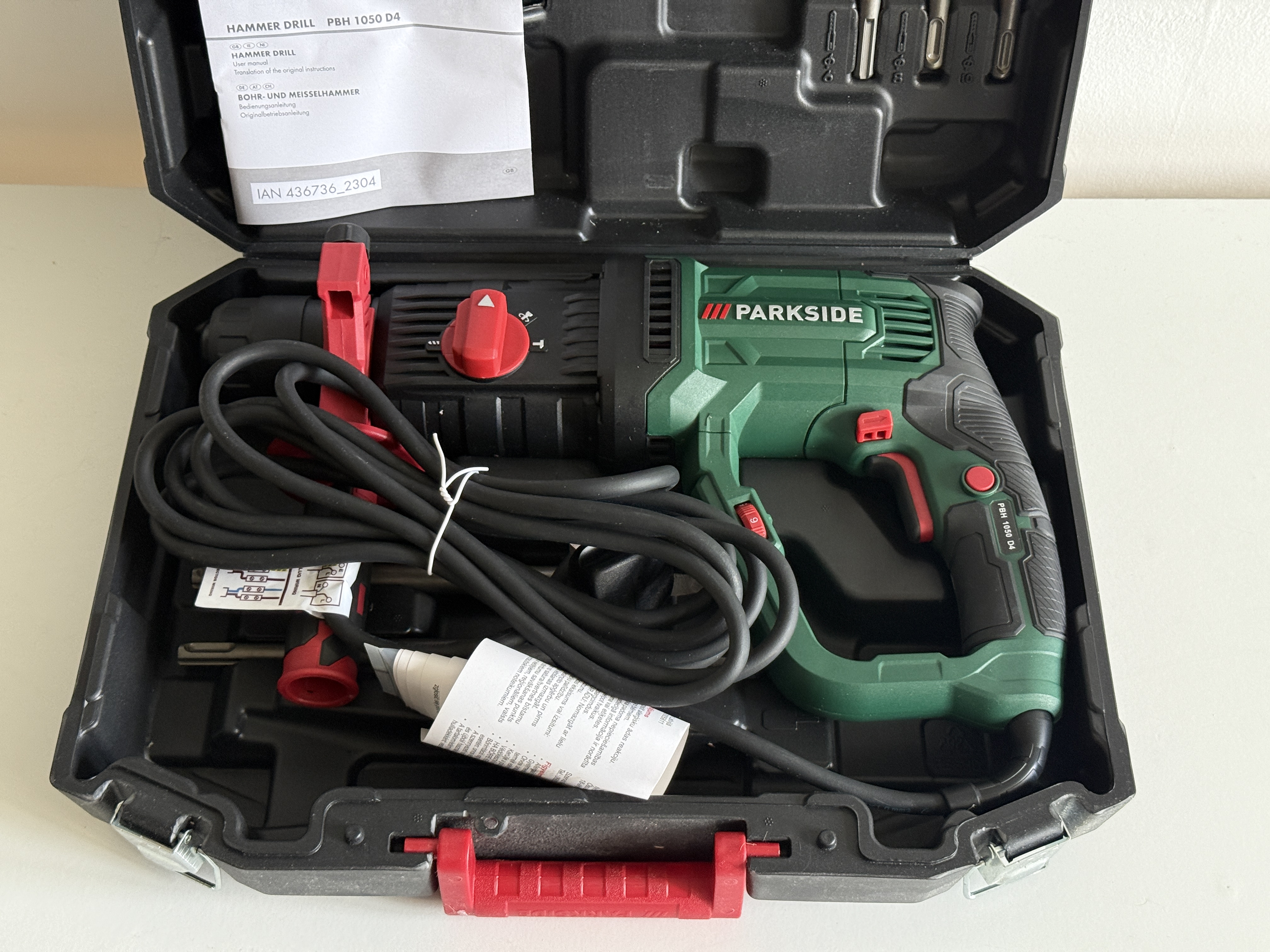 If you're mounting a TV on a concrete wall or installing a railing on an old concrete staircase, a rotary hammer is what you need. It is more powerful than a regular hammer drill, as it delivers greater impact force. Therefore, it is the best choice when working with hard surfaces such as a concrete wall.