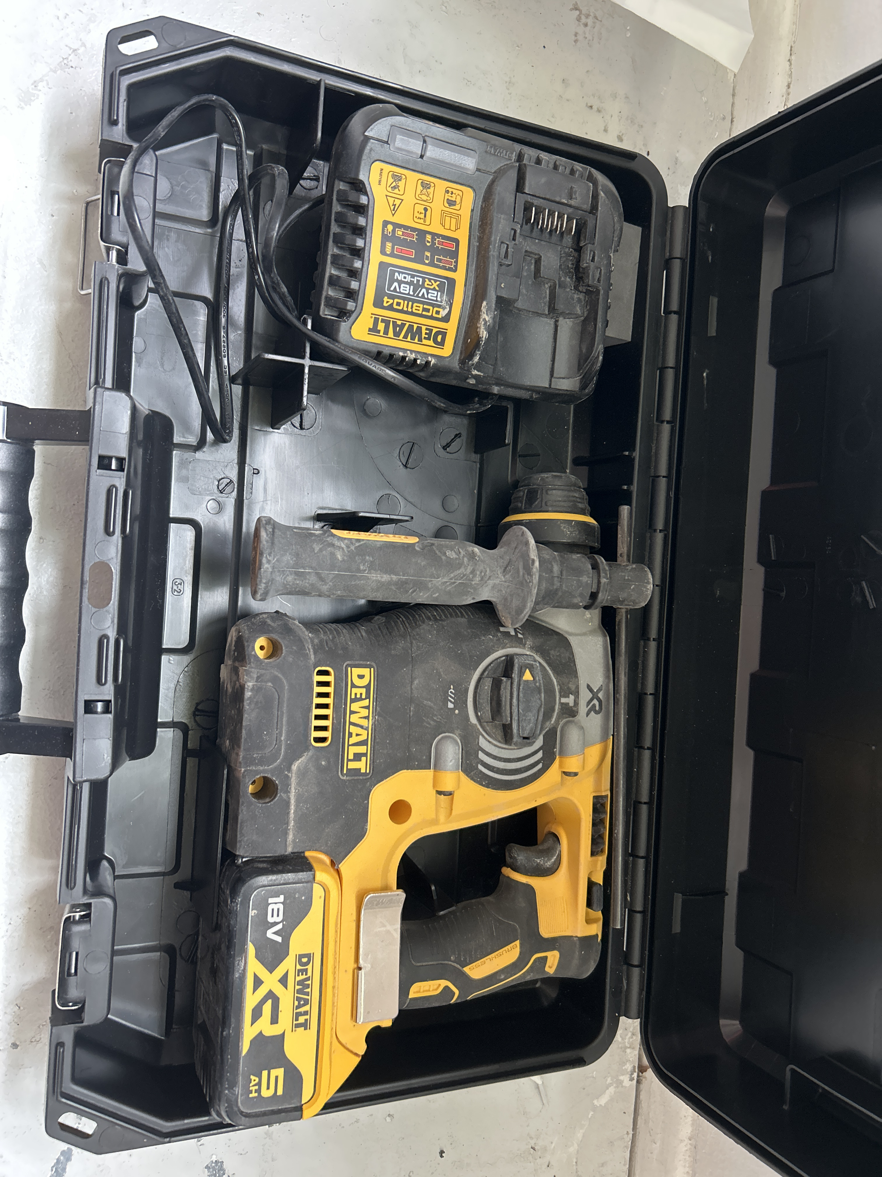 If you're mounting a TV on a concrete wall or installing a railing on an old concrete staircase, a rotary hammer is what you need. It is more powerful than a regular hammer drill, as it delivers greater impact force. Therefore, it is the best choice when working with hard surfaces such as a concrete wall.