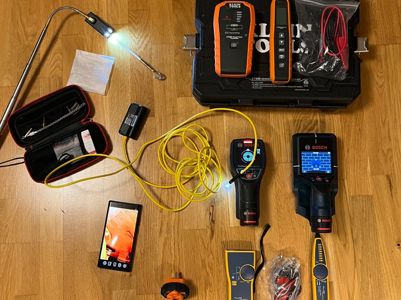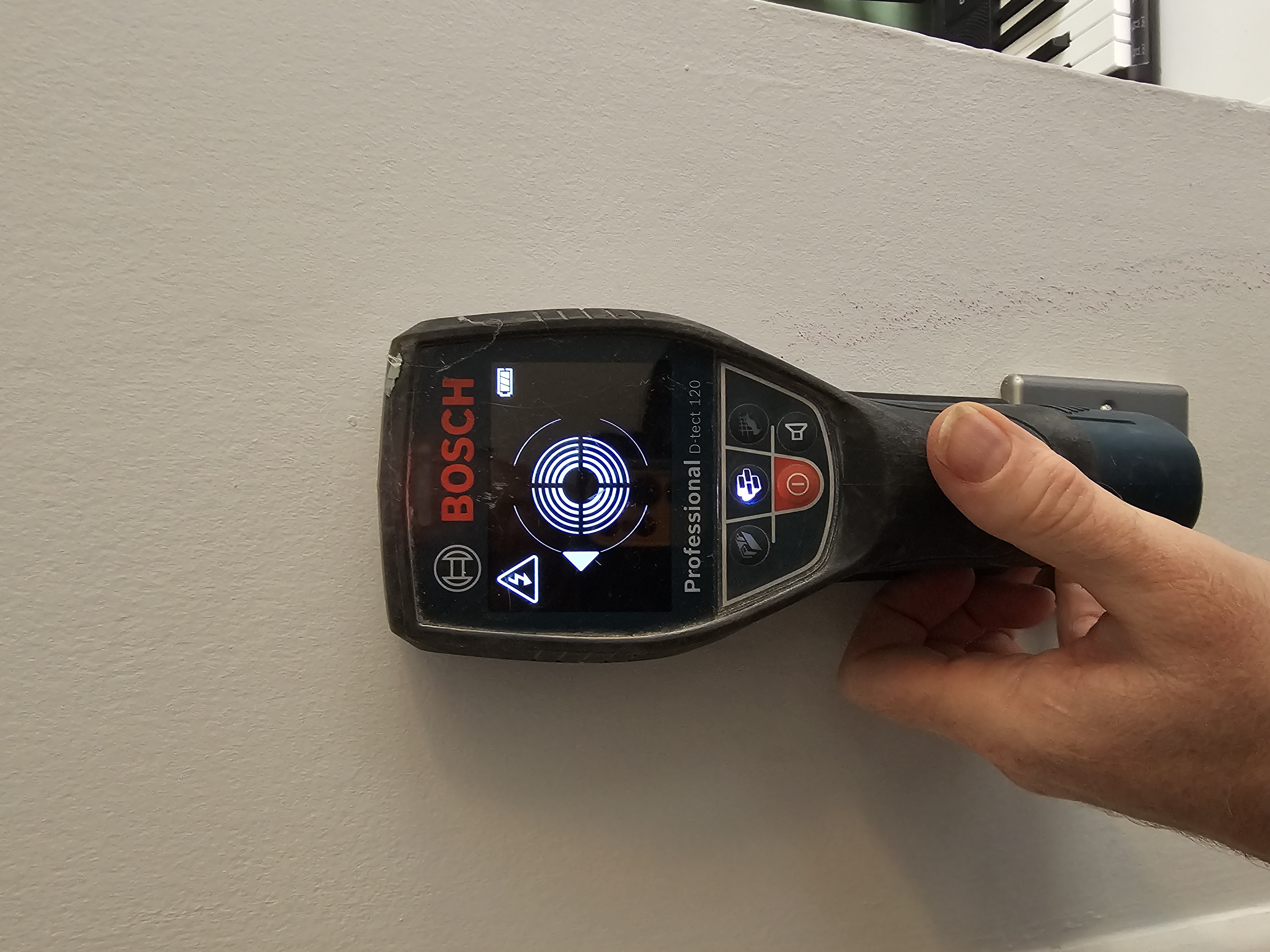 With a stud finder, you can determine what's behind a wall without opening it. They come in several different models.