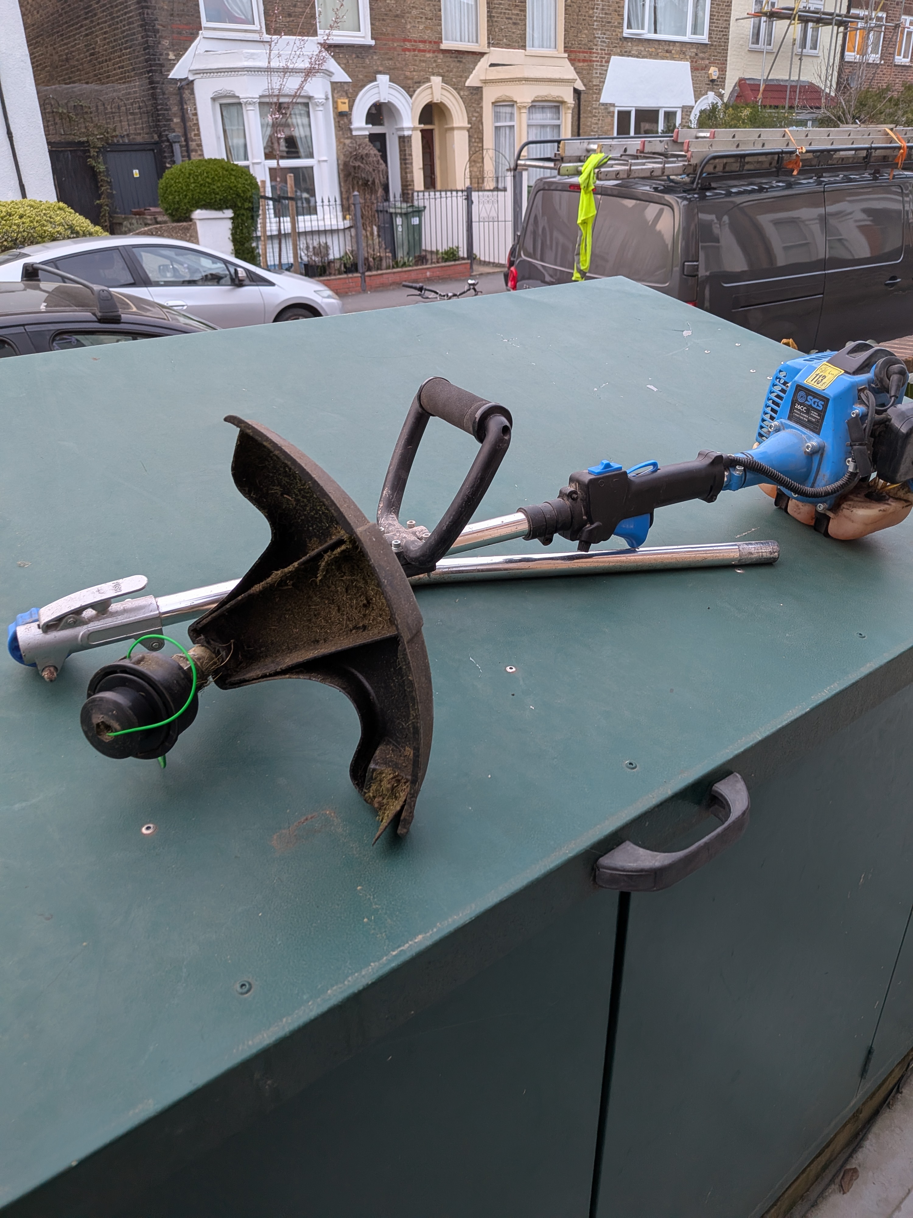 You can rent clearing saw & grass trimmer for approx £12 per day or £52 for a week.