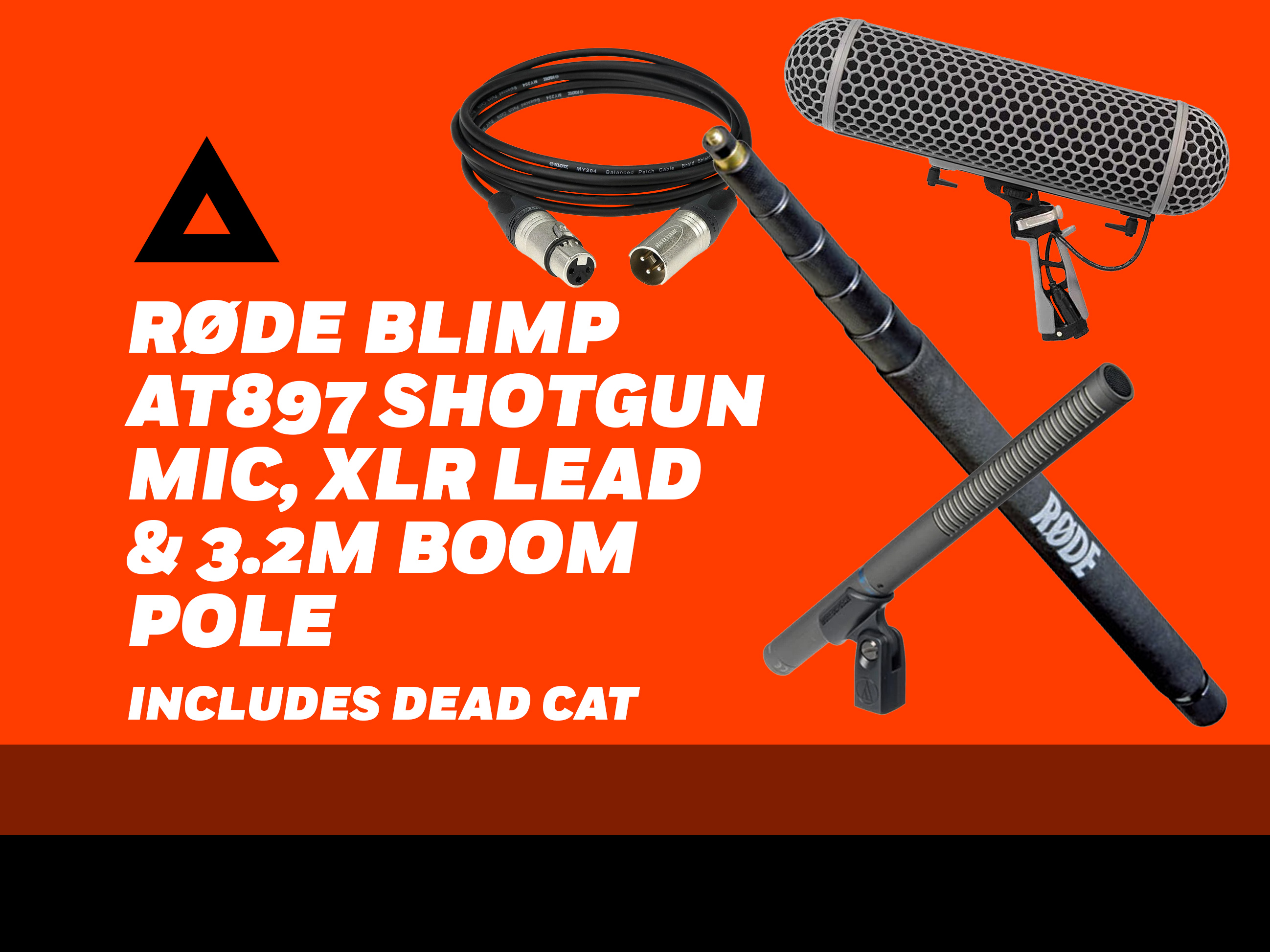 Audio technica at897 shotgun mic, røde blimp inc deadcat, xlr cable and boom pole