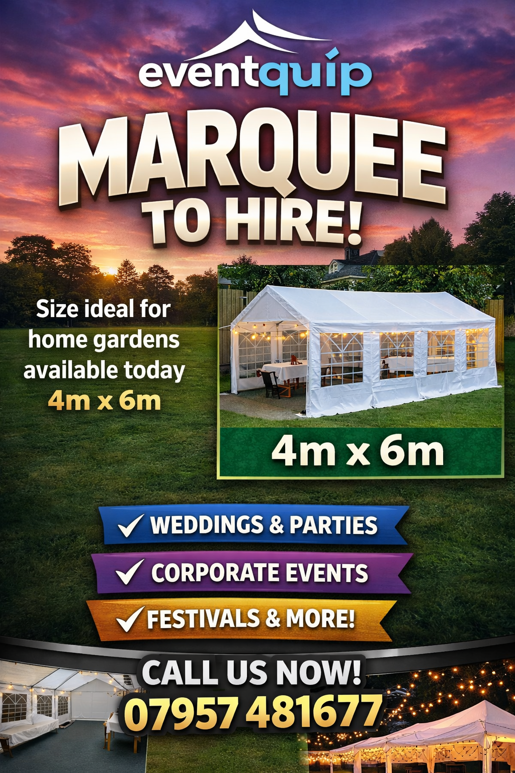 You can rent marquees in Croydon for approx £44 per day or £126 for a week.