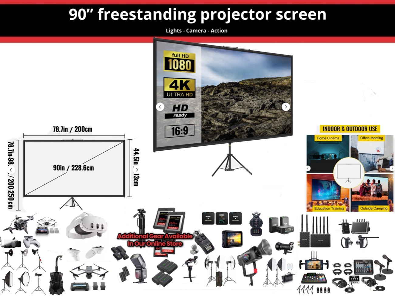 Enhance your movie nights or presentations with a high-quality projector screen. Perfect for creating an immersive viewing experience anywhere.