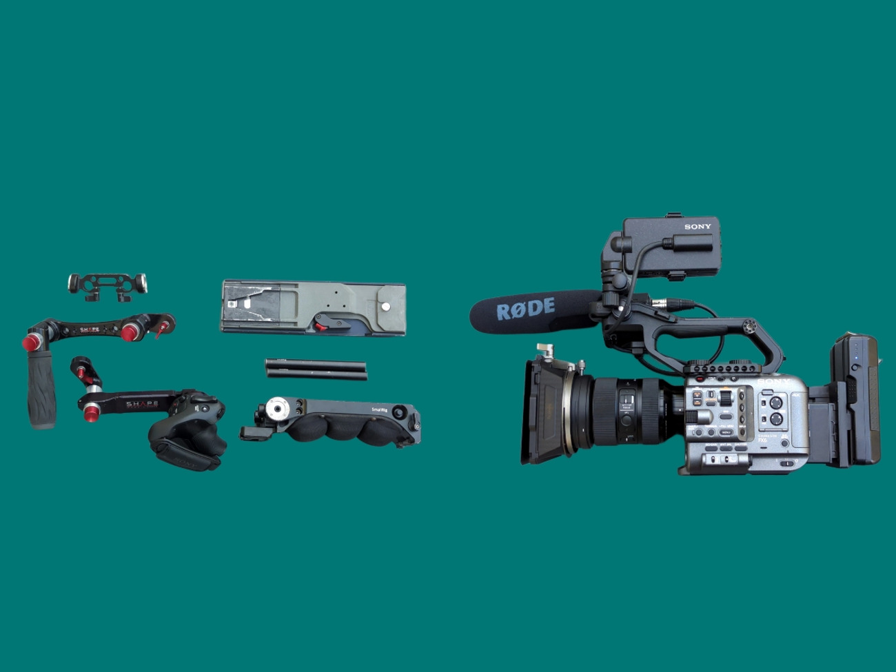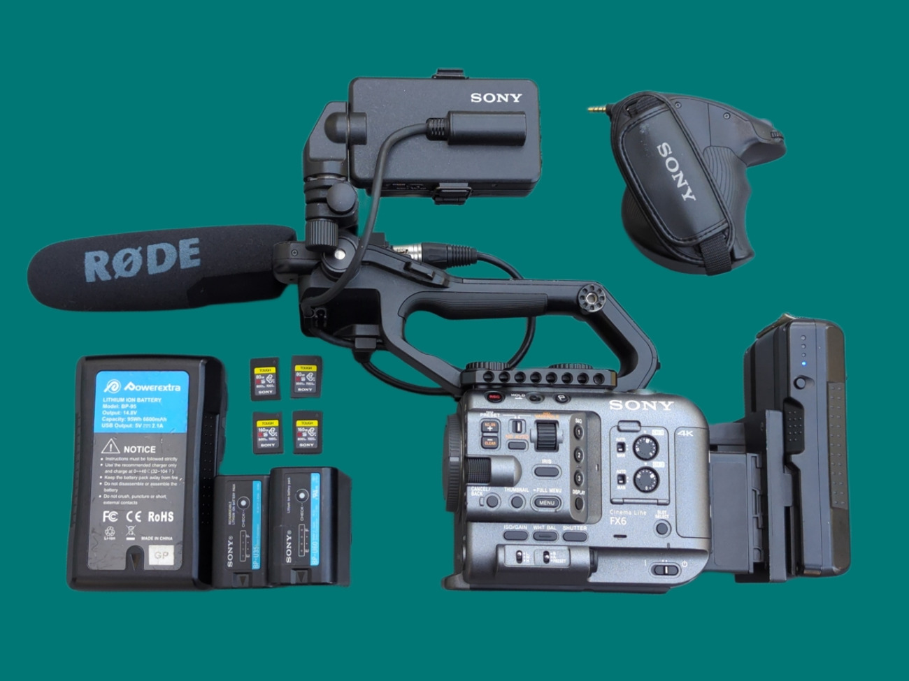 Sony fx6 with vlocks, cf express a cards and handheld rig