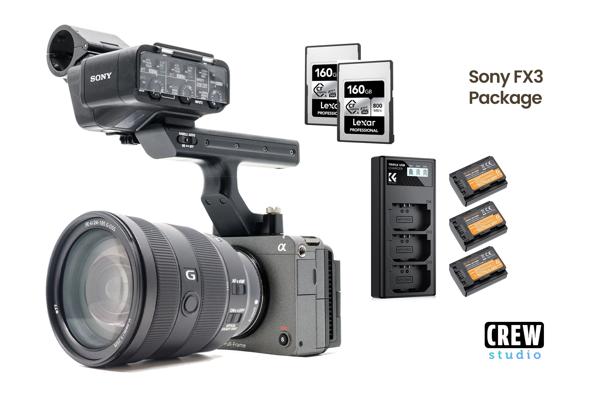 Sony fx3 cinema camera kit + 24-105mm g lens | xlr handle | cfexpress media | 4 batteries