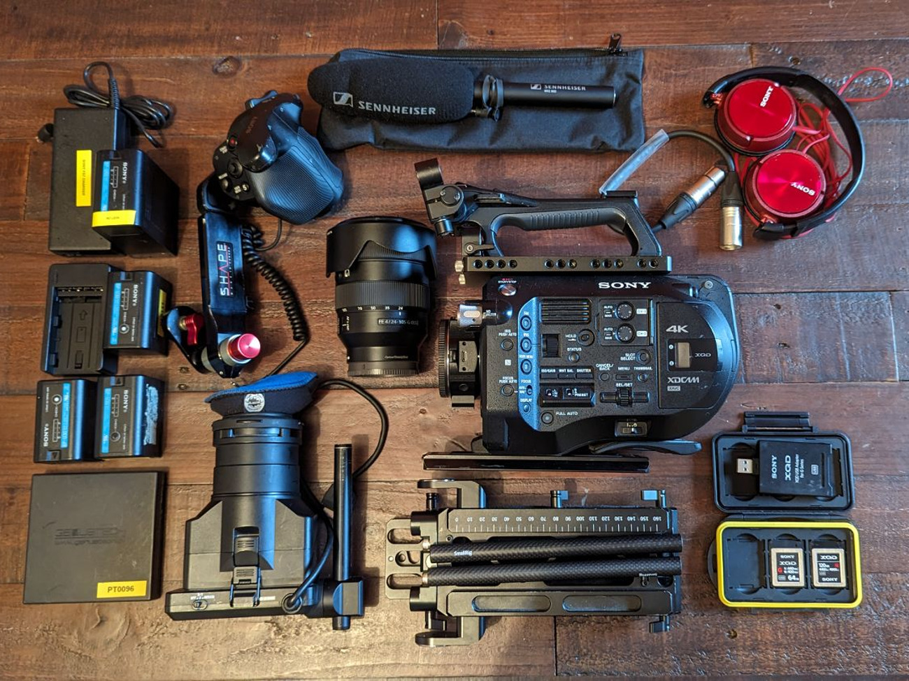 Sony fx3 + full rig + xlr audio + sennheiser mke600 (3 batteries)