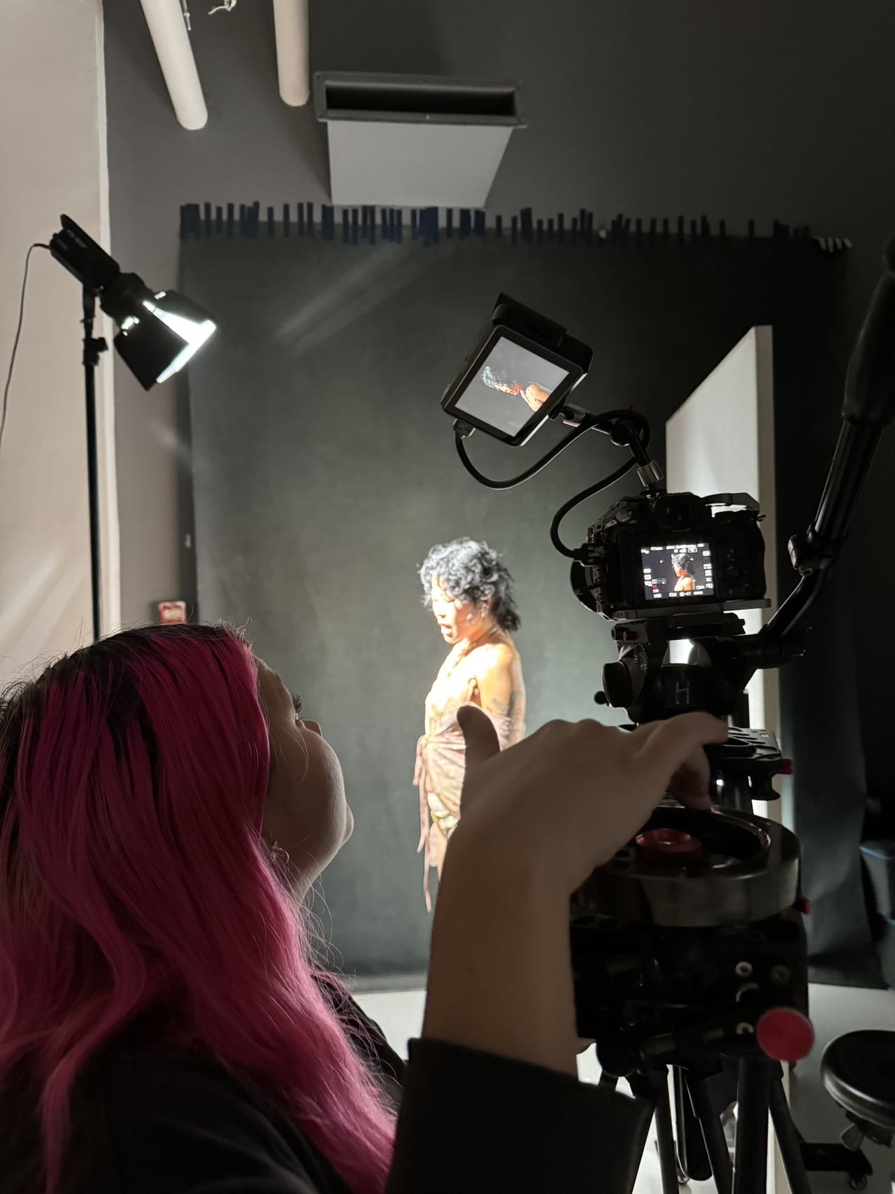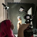 2 RGB LED lights with stands GVM 800D RGB LED Video Lighting Kit, APP Controll Video Led Panel Light, 360° Full Color Photography Lighting Dimmable 3200K to 5600K for Studio YouTube and Outdoor Shooting, CRI97+ Video Lights. Super easy to use for budget music videos, interviews, shorts, has lots of different colour options, also has a ton of fun settings like party, cop car, etc if you want lighting effects.