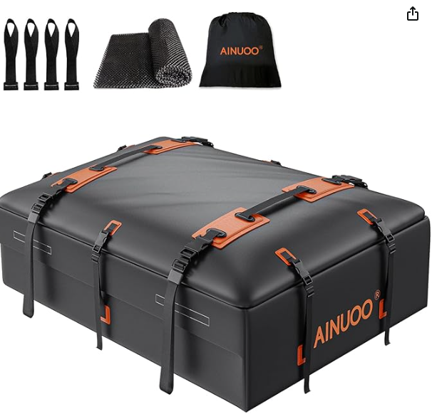 You can rent roof box without roof racks for approx $10 per day or $47 for a week.